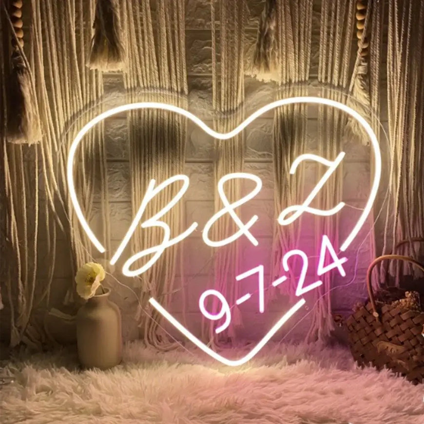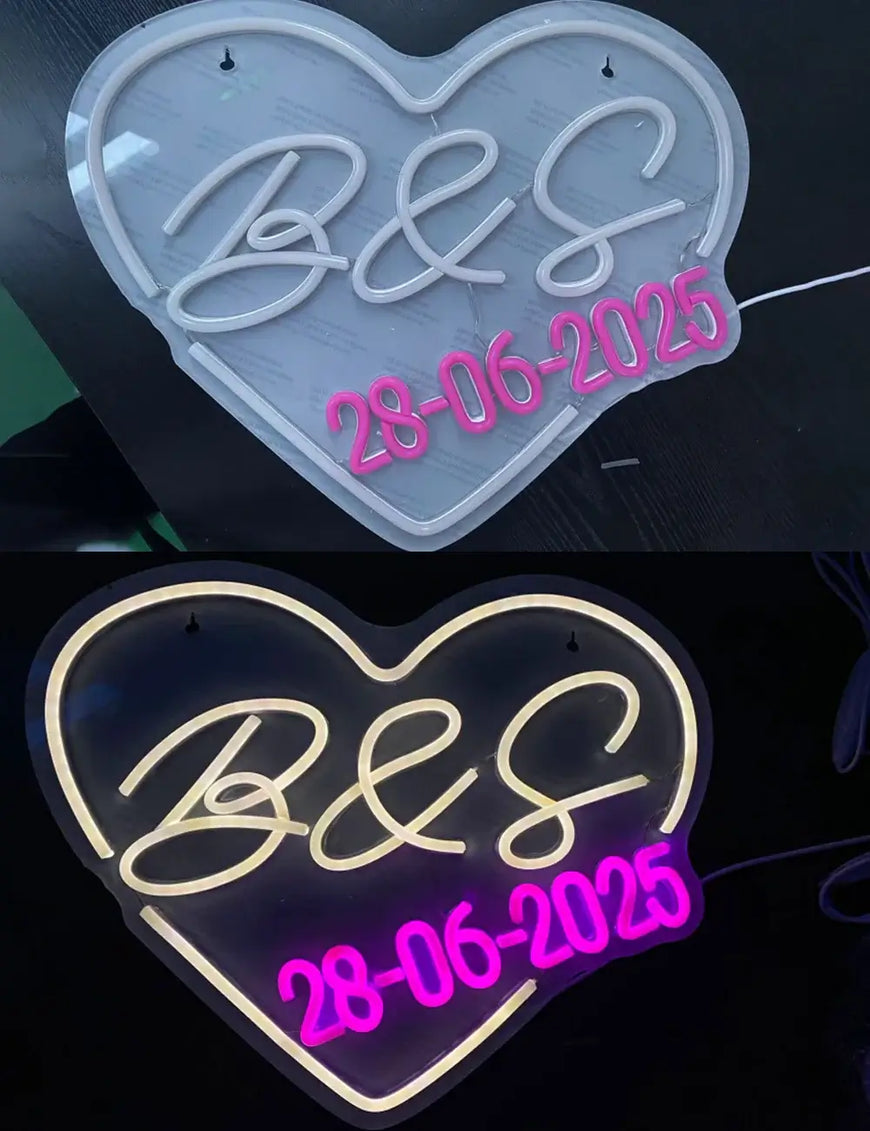 πŸ’– Custom Neon Sign – Heart πŸ’‘ | Initials & Name Wedding Sign πŸ’ | LED Name Light-Up Sign ✨ For Room πŸ›‹οΈ, Party πŸŽ‰, Home 🏑 & Wall Backdrop πŸŽ€