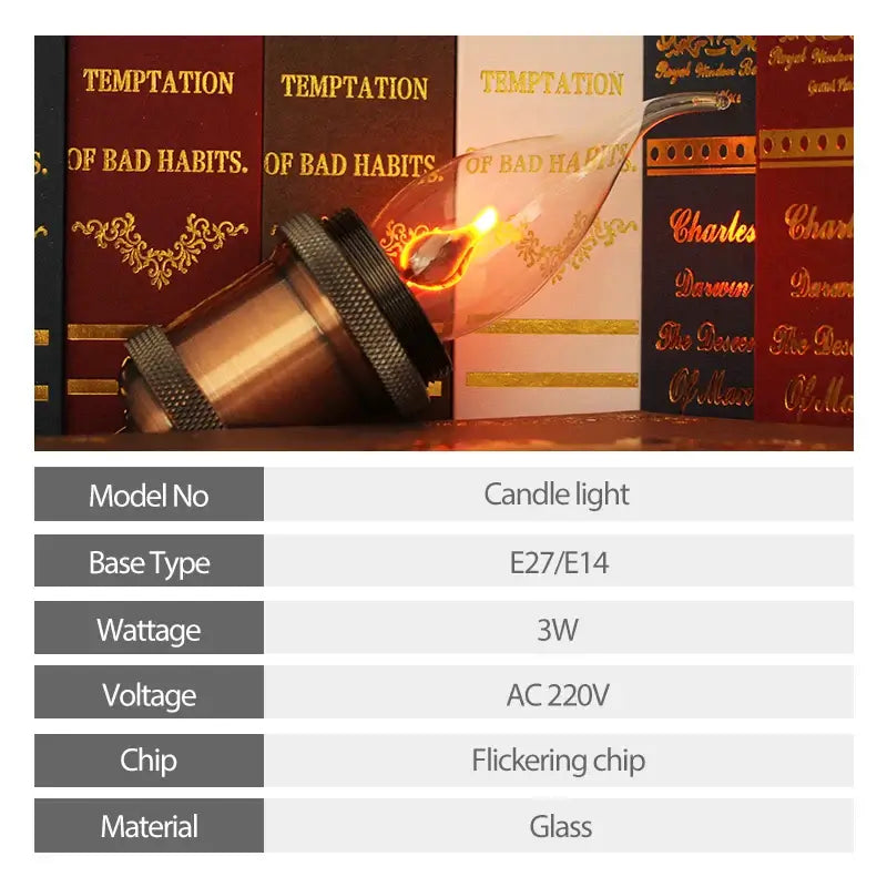 LED Vintage Edison Candle Light Retro Bulb - Flickering Flame Effect