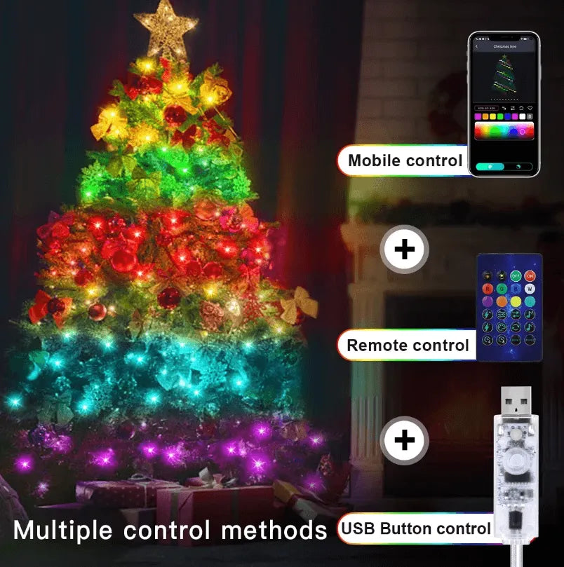 These USB 5V LED String Lights are vibrant, customizable decorative lights that add a festive and colorful touch to any occasion. They are Bluetooth-enabled lights and can be controlled via a mobile app, allowing you to sync the lights with music for dynamic effects. Featuring RGBIC technology, each light segment can display multiple colors simultaneously, creating stunning visuals. Perfect for birthdays, parties, holiday garlands, and Christmas decorations, these addressable fairy lights are convenient and versatile for indoor or outdoor use.