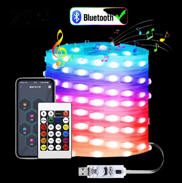 LED Smart String Fairy DIY Lights with Bluetooth and Remote - USB Powered